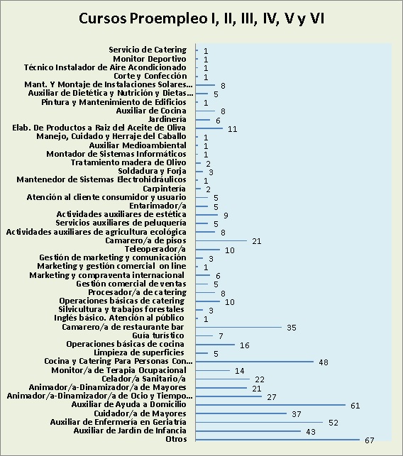 - Algunos cursos de 300 horas y otros de duración variable según Real Decreto que regula los Certificados de Profesionalidad en el Proyecto Proempleo VI
